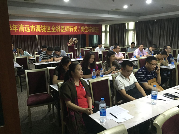 为贯彻落实省委、省政府关于加强基层医疗卫生服务能力建设的决策部署,切实加强清远农村医疗卫生人才培养和队伍建设,提高农村医疗卫生队伍的整体素质和服务水平,根据清远市政府印发的《清远市乡镇卫生院临床医学本科学历教育暨全科医生转岗培训工作实施方案》要求,为缓解清城区基层医疗卫生单位紧缺人才等问题,在清城区有关机构指导下,2018年5月华医网联合广州医学院等多方专家教授在清城区开展面授加网络的全科医生转岗培训工作。