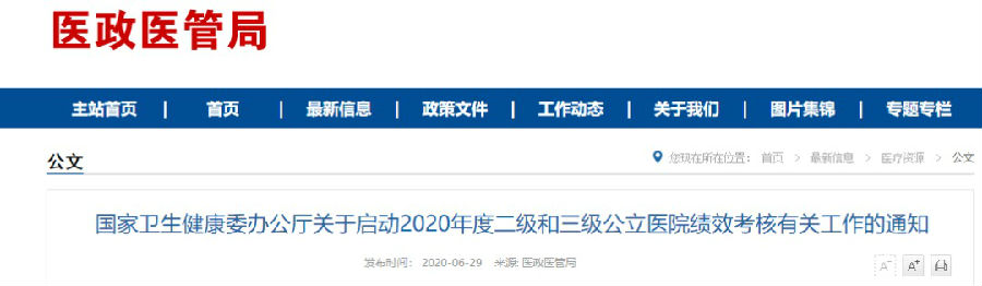 近日,国家卫健委下发《关于启动2020年度二级和三级公立医院绩效考核有关工作的通知》(以下简称《通知》)。