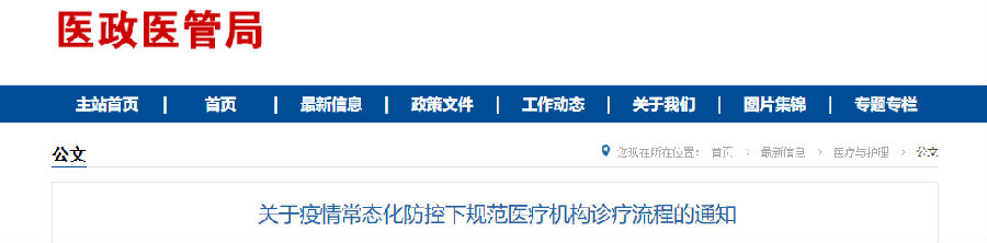 为进一步做好疫情防控常态化,国家卫健委官方网站公布了《关于疫情常态化防控下规范医疗机构诊疗流程的通知》。