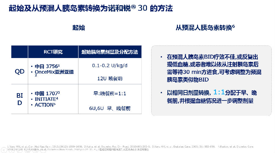 图2. 起始及从预混人胰岛素转换为诺和锐30的方法[27-32]